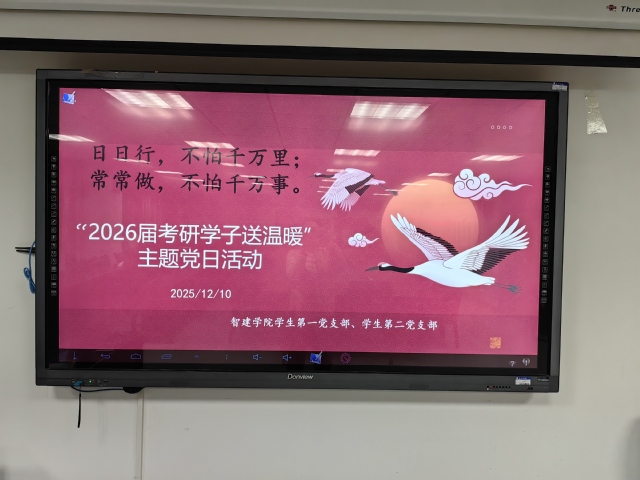 为切实关心、关爱学院考研学生,帮助学生调整心态,2025年12月10日18点,智能建造与交通工程学院学生第一党支部、学生第二党支部在41栋305开展了“为考研学子送温暖”主题党日活动,用实际行动为即将走上考场的同学们送上鼓励与祝福。