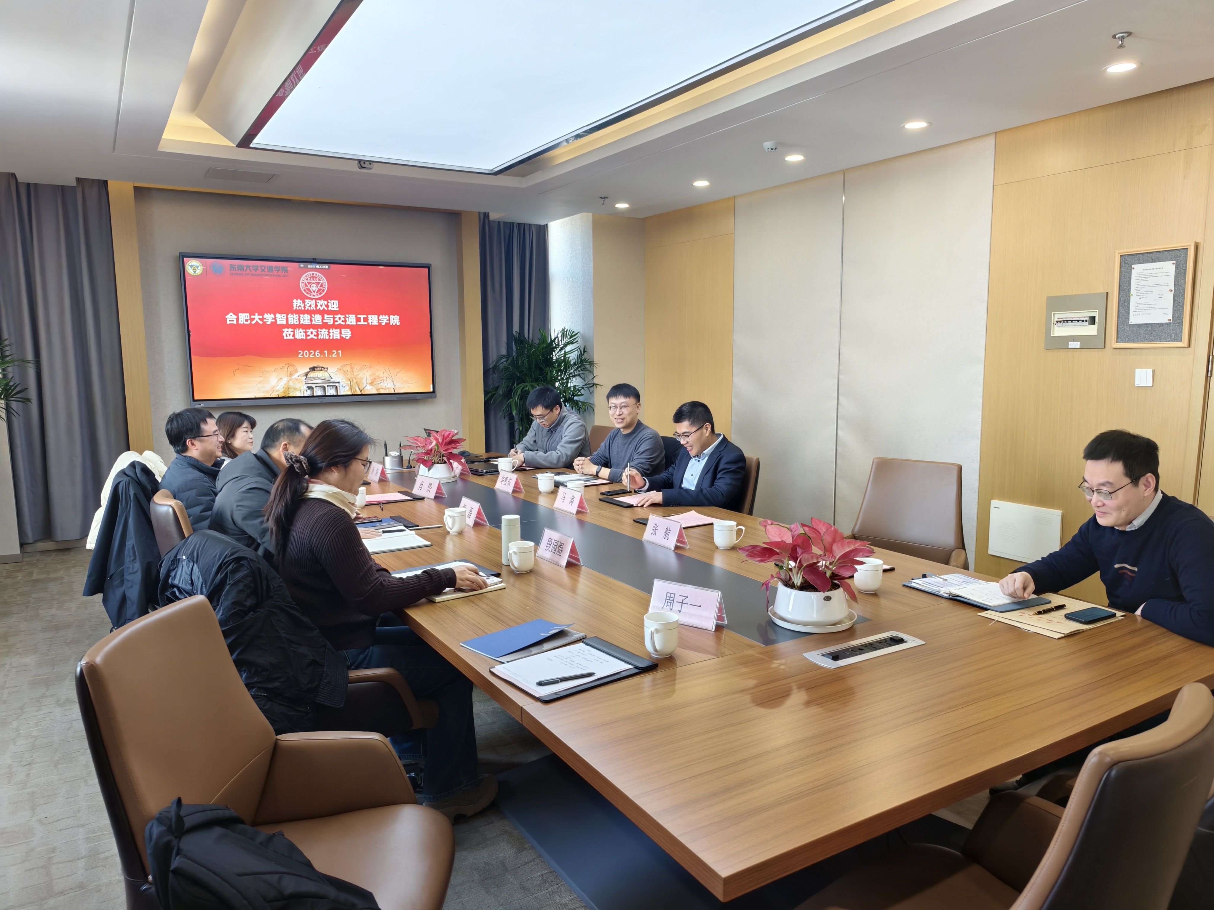 2026年1月21日上午九点半,东南大学交通学院会议室内气氛热烈、交流融洽。合肥大学智能建造与交通工程学院由祝磊院长、肖赟副院长、段园煜副院长、孙培主任等一行组成的代表团,与东南大学交通学院马涛院长、华雪东副院长、张航副书记、赵德主任、陈丰副教授等领导专家齐聚一堂,围绕“人才招聘合作”与“低空学科建设”两大主题展开深入研讨。此次交流旨在加强校际协作、共谋学科创新,为推动交通工程领域高质量发展注入新动能。