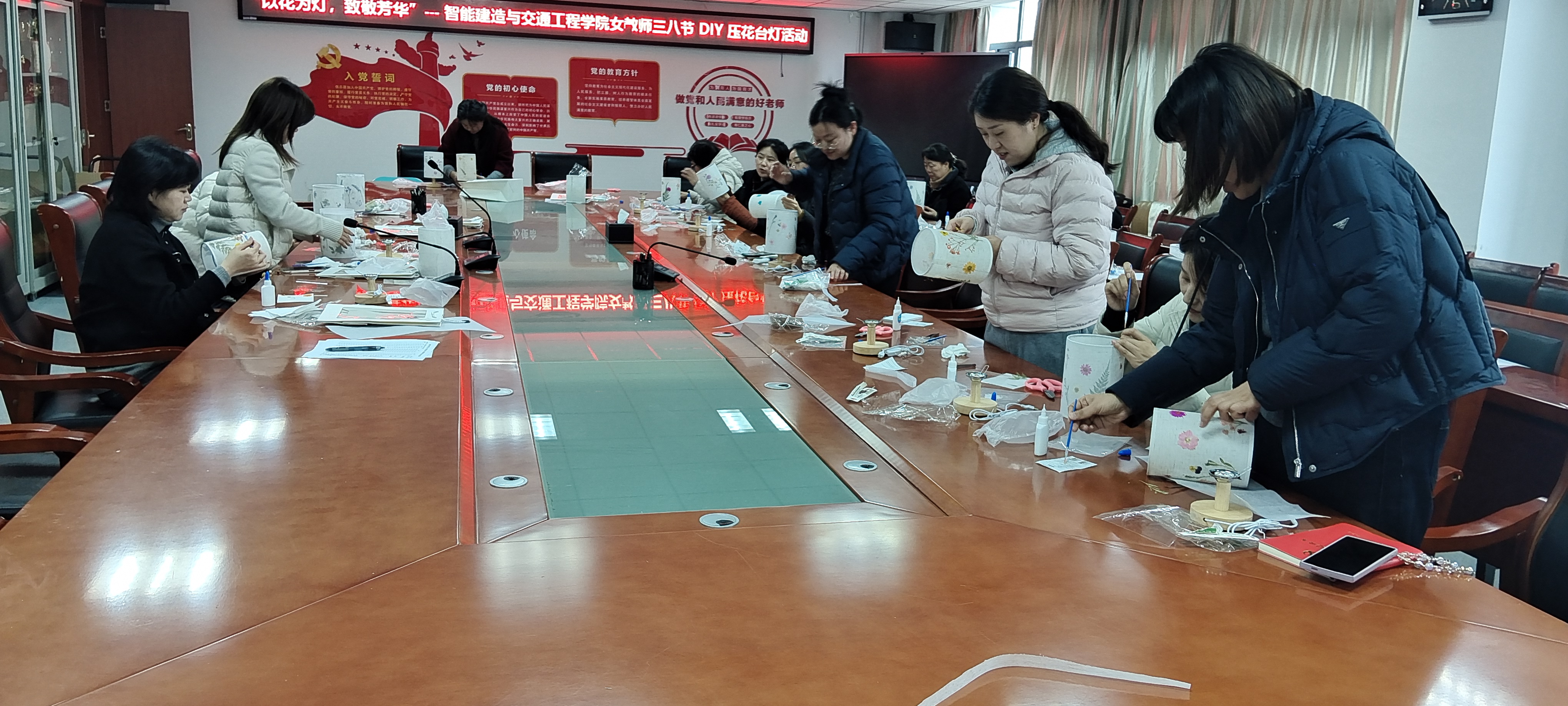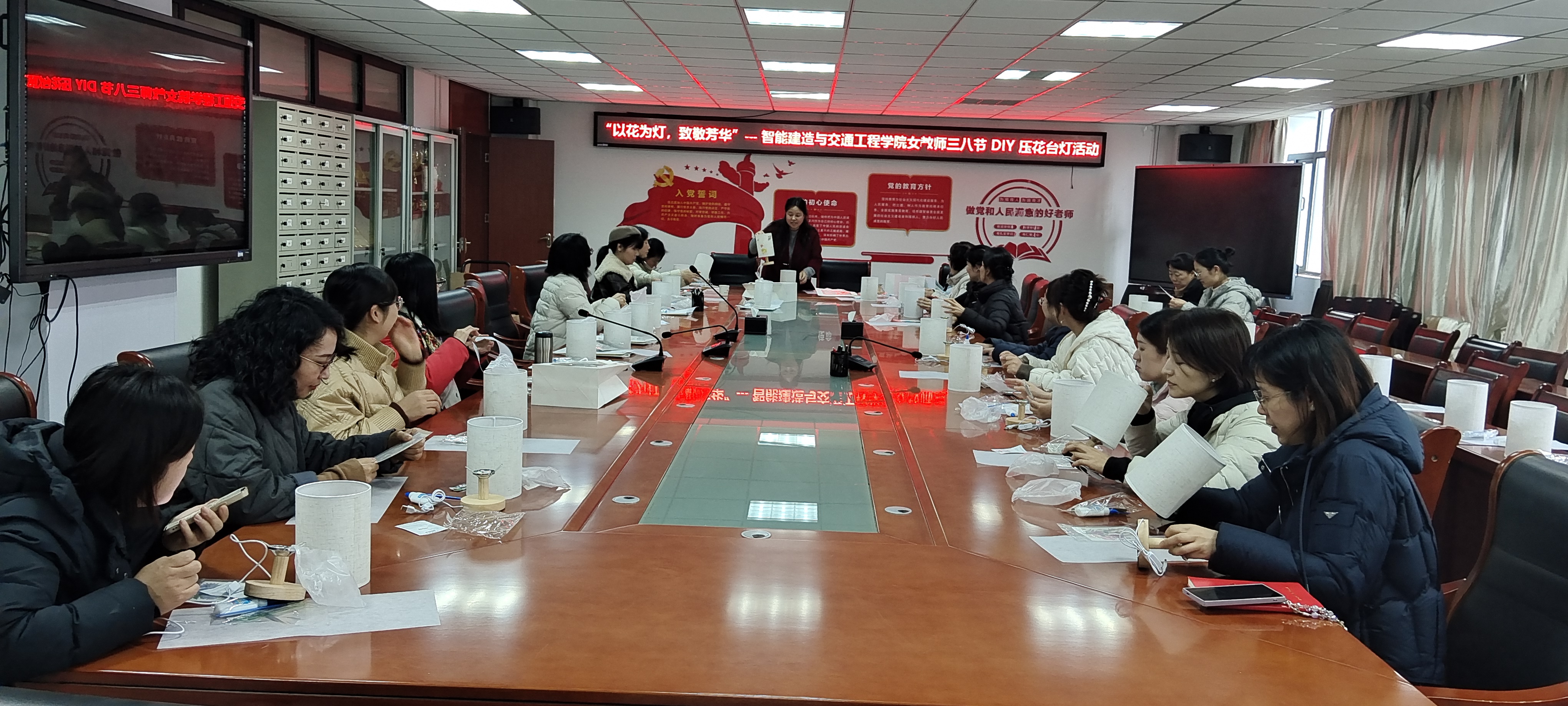 花灯璀璨映元宵,巾帼芳华绽春风。3 月 3 日,恰逢农历正月十五元宵节,亦是第 116 个 “三八” 国际妇女节来临之际,智能建造与交通工程学院将传统民俗与节日关怀深度融合,于 41 栋 3 楼 305 会议室举办 “以花为灯,致敬芳华” DIY 压花台灯活动。学院全体女教职工齐聚一堂,双节同庆,共赴美好。