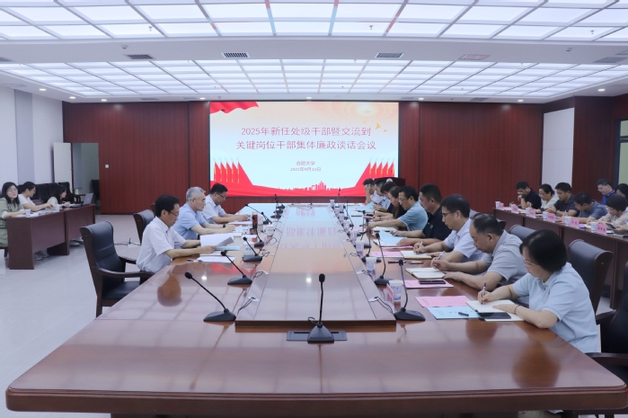 9月12日,我校召开2025年新任处级干部暨交流到关键岗位干部集体廉政谈话会议。校党委书记邬平川,党委副书记周飞,党委委员、纪委书记、省监委驻合肥大学监察专员吴功福出席会议,会议由周飞主持。学校新任处级干部及交流到关键岗位干部、纪委办负责人和组织部负责人参加会议。